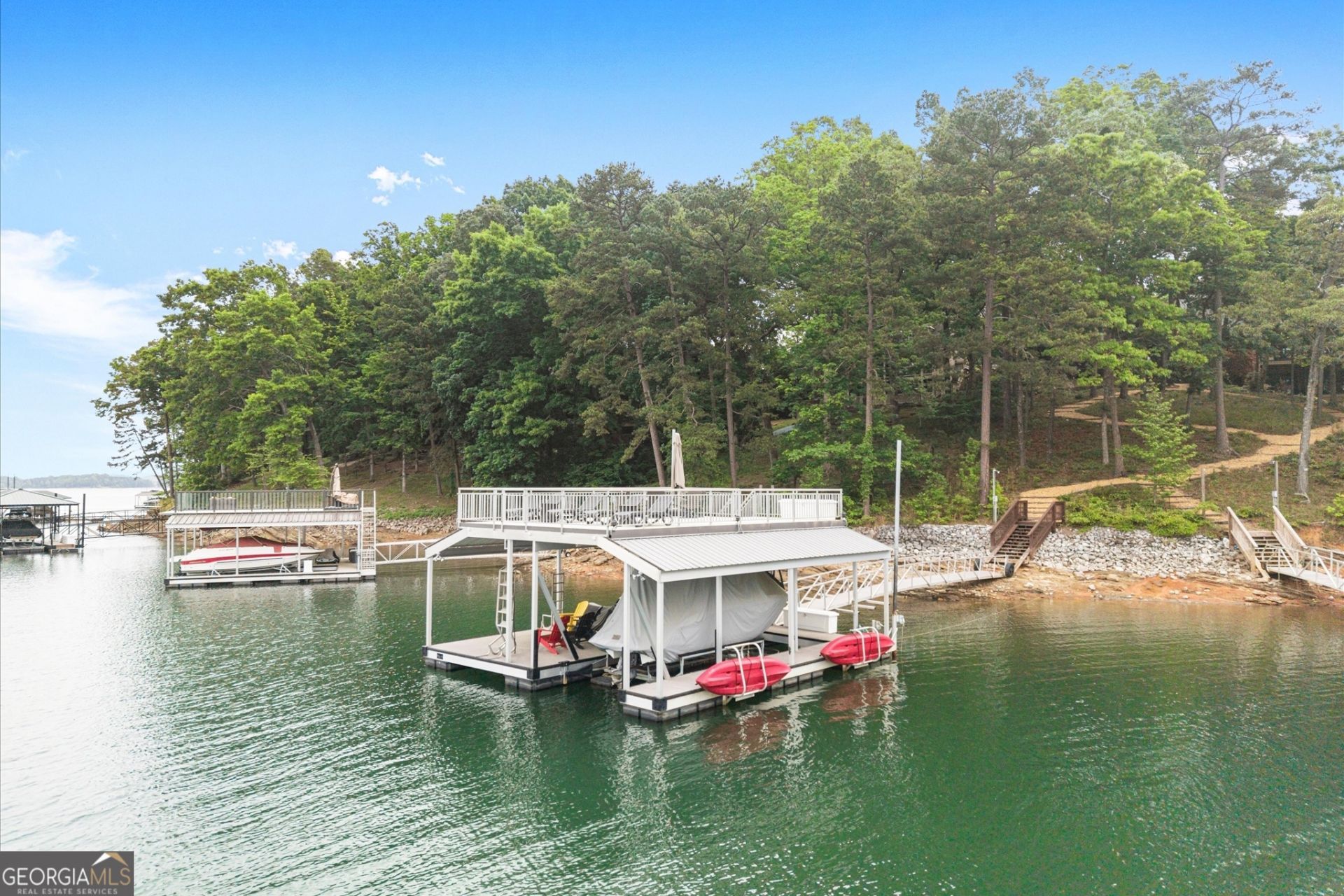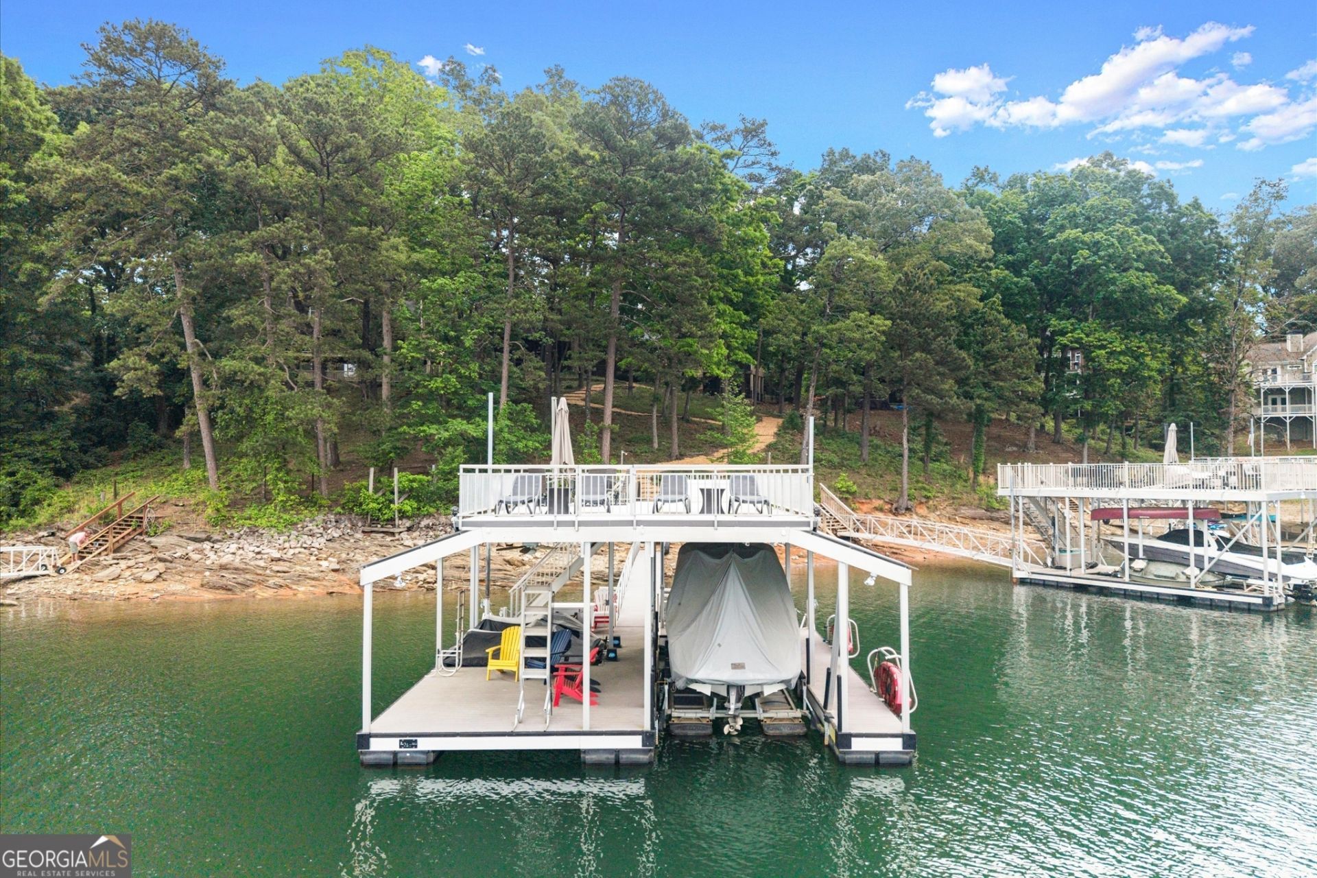 Welcome to the lake life you've been dreaming about. Nestled in the heart of Forsyth County on the sparkling shores of Lake Lanier, this stunning cabin delivers the perfect blend of rustic charm and ready-to-enjoy comfort - and it comes fully furnished, so all you need to bring is your bathing suit. Step outside and take a short, easy walk straight down to your private deep-water dock - a gorgeous 3232 party deck by Martin Docks, one of the most respected names on the water. Whether you're hosting a sunset cookout, launching a morning ski run, or just dangling your feet off the edge with a cold drink in hand, this dock is the centerpiece of everything lake life is meant to be. Ready to hit the water? The dock comes complete with a boat lift and jet ski lifts, keeping your toys safely out of the water and ready to go at a moment's notice. No hassle, no delay - just throttle up and go. When you're not on the lake, you're perfectly positioned for everything the North Georgia corridor has to offer. Downtown Gainesville, the outlet shopping of Dawsonville, and the vibrant heart of Cumming are all within easy reach - dining, entertainment, and everyday conveniences, all close without sacrificing a bit of that serene lakeside privacy. This is a rare, turnkey opportunity on one of Georgia's most beloved lakes. Don't wait - lake life is ready and waiting for you.